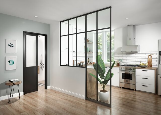 Délimiter les espaces c’est essentiel mais le cloisonnement total n’est pas obligatoire ! Une cuisine semi ouverte à l'avantage d’avoir plus d’espace, d’être conviviale et de favoriser la communication entre les membres de la famille. Néanmoins le confort sonore est essentiel, notamment si la cuisine donne sur le séjour ou si les lieux d’aisance sont proches. Aménager une cloison vitrée permet de distinguer les pièces et de conserver l’intimité de tout le monde. Et quand on aime cuisiner, c’est bien parfois d’être dans sa bulle sans l’isolement, concentré sur la découpe des légumes sur l’îlot central ou le plan de travail. Et puis ce serait dommage de cacher sa cuisine aménagée neuve avec sa jolie crédence et son évier en faïence !